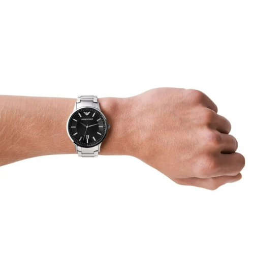 Sade indeksler ve Emporio Armani logosu ile minimalist şıklık. -